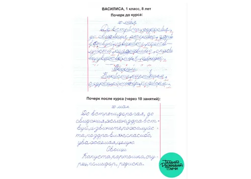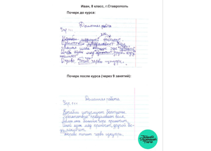 Огромное спасибо, Марина Анатольевна! Коррекция почерка у сына на 5+. Продолжим заниматься дома, сын в восторге от занятий!
